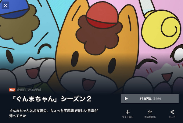Netflixでは、アニメ「ぐんまちゃん シーズン2」は配信されていませんでした。