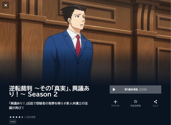 - 「逆転裁判 ~その「真実」、異議あり!~ Season2」が全話見放題で視聴可能