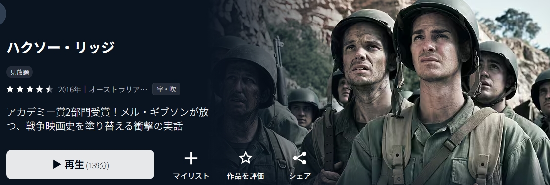 - 映画「ハクソー・リッジ」がフルで視聴可能。