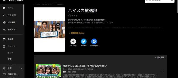 また、バラエティ番組「ハマスカ放送部」は配信していませんが、関連動画でしたら視聴することができます。