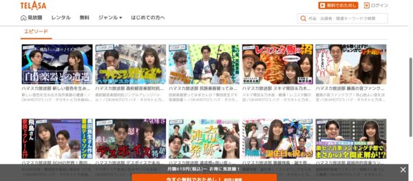 TELASAの特徴は、テレビ朝日系列の動画配信サービスのこともあり放送中のバラエティ番組の見逃し配信も無料視聴できます。
