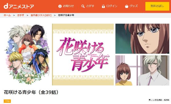 またdアニメストアは、アニメ「花咲ける青少年」のシリーズや関連動画を全話視聴できます。