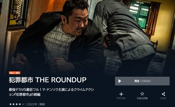 また、映画「犯罪都市 THE ROUNDUP」の関連作品の映画もフルで視聴が可能です。