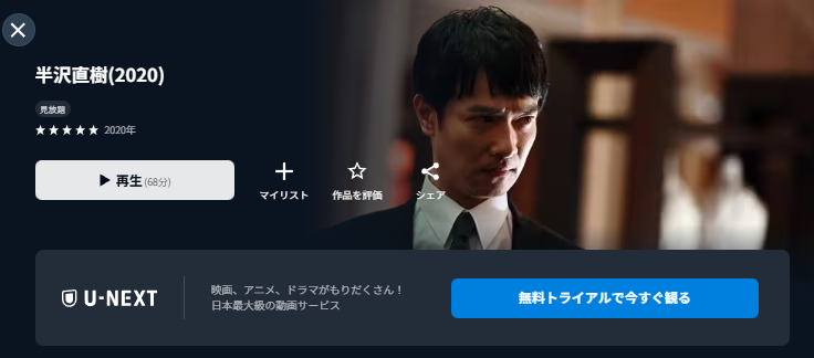 先に結論をお伝えすると、「半沢直樹(2020)」は、『U-NEXT』の動画配信サイトで配信開始後、全話視聴が可能です。