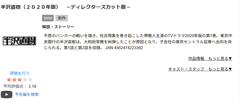 TSUTAYA DISCASで視聴できる「半沢直樹(2020)」の関連作品