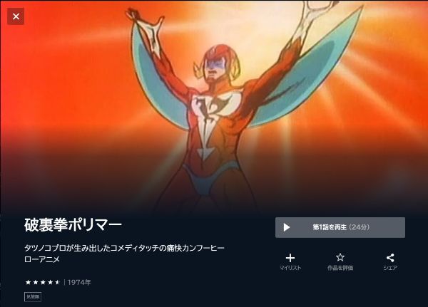 U-NEXTでアニメ「破裏拳ポリマー」の動画を無料トライアルで全話視聴