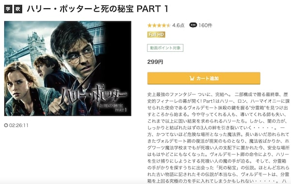 ただ、初回特典でお試し期間と一緒にポイントが600Pt付与されるので、そのポイントを使えば「ハリー・ポッターと死の秘宝PART1」の動画をお得にフルで視聴できます。