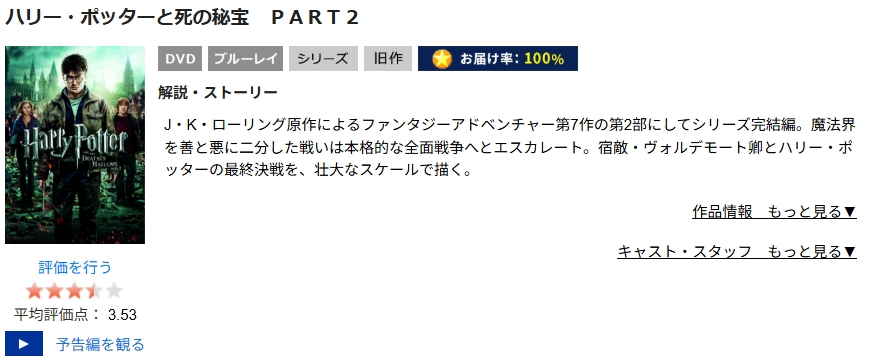 TSUTAYA DISCASで映画「ハリー・ポッターと死の秘宝PART2」をDVDレンタルでフル視聴