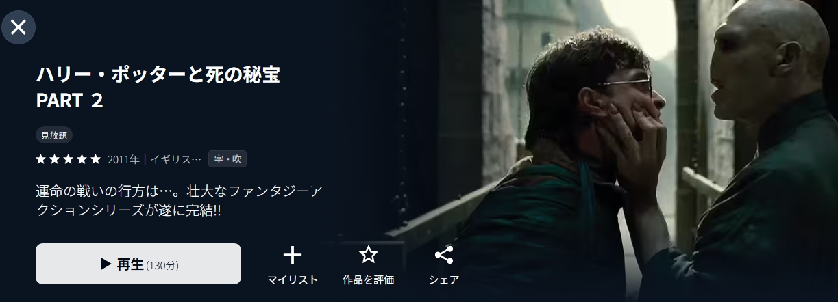 - 映画「ハリー・ポッターと死の秘宝PART2」がフルで視聴可能。
