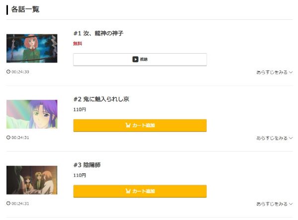 「遙かなる時空の中で-八葉抄-」のアニメのレンタル料金は1話110円です。