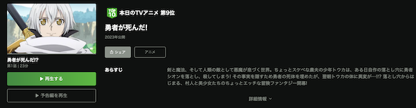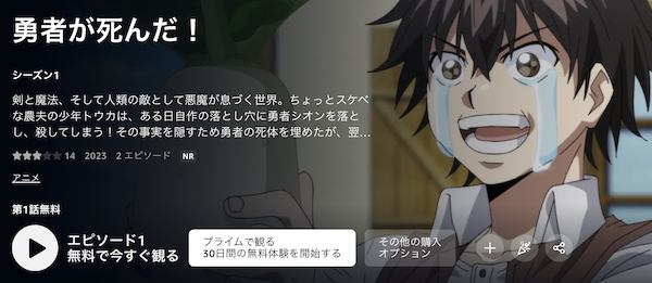 初回お試し期間が2週間があり、アニメ「勇者が死んだ!」は2023年4月12日から配信されており、全話見ることができます。