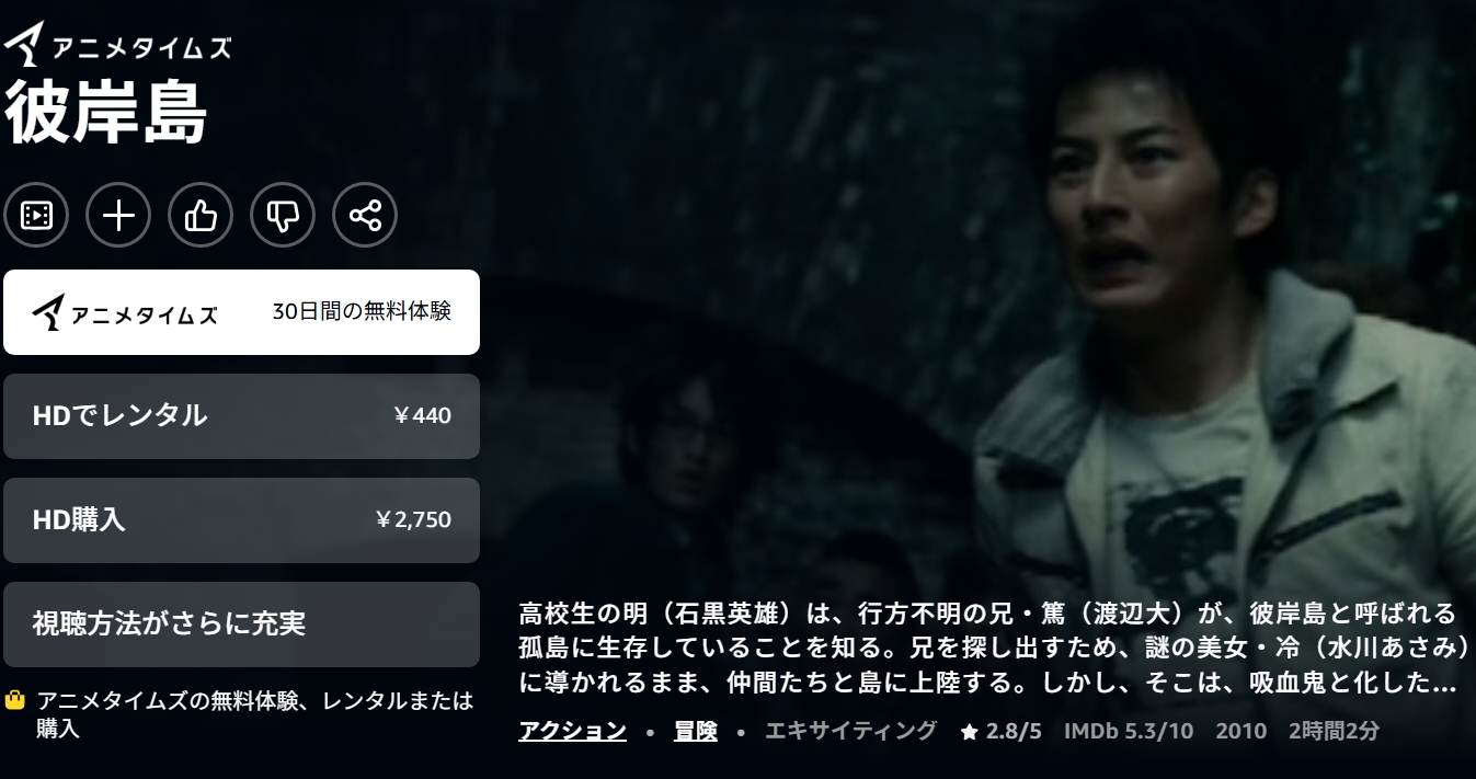 2026年4月現在、30日間の無料トライアルに登録すれば、映画「彼岸島」を追加料金なしでフル視聴できます。