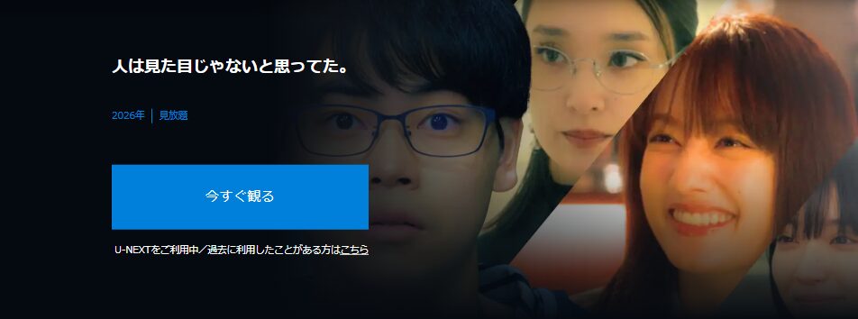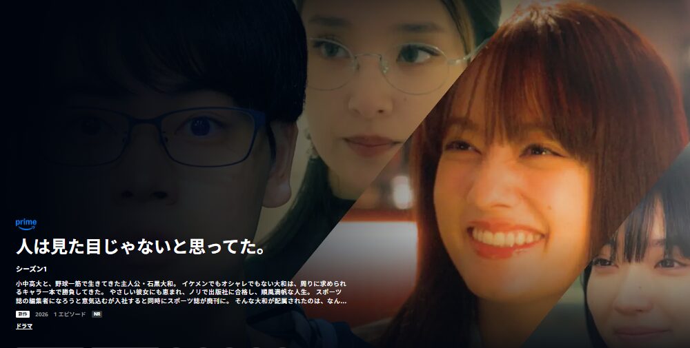 2026年1月8日(木)から放送スタートのドラマ「人は見た目じゃないと思ってた。」の動画を見逃し配信で視聴できる配信サイトを紹介します。