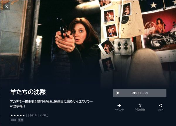 U-NEXTで映画「羊たちの沈黙」の動画を無料トライアルでフル視聴