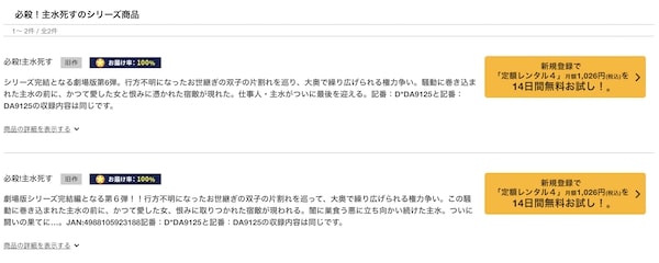 ツタヤディスカスは、準新作・話題作・旧作が4枚までなら、無料お試し期間中にレンタルができるので、「必殺!主水死す」の映画を無料で視聴した後も14日間以内なら他のシリーズ作品や見たかった映画も無料でレンタルすることができますよ。