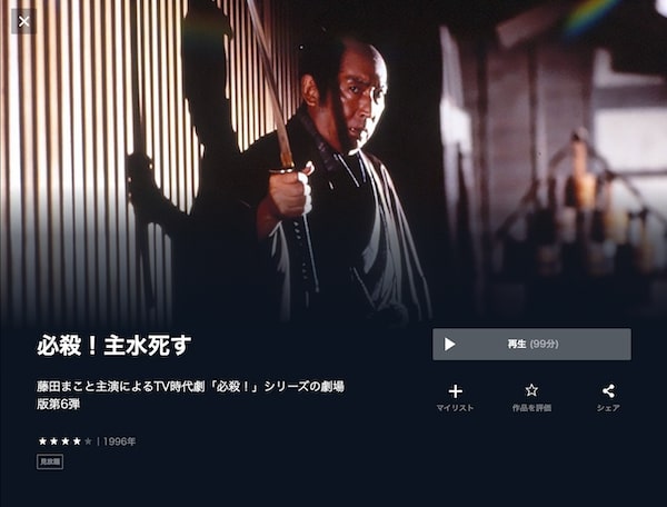 また、映画「必殺!主水死す」のシリーズ作品の映画もフルで無料視聴が可能です。