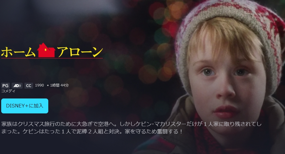 ディズニープラスでは、映画「ホーム・アローン」のフル動画が見放題で配信中です。