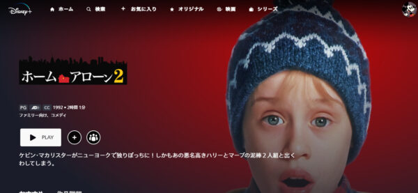 - 「ホーム・アローン2」の他のディズニー作品も視聴可能。