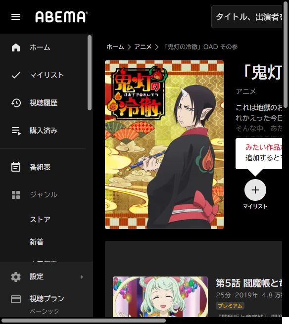 また、ABEMAは独自のオリジナル動画やコンテンツがあり、アニメ「鬼灯の冷徹 OAD その参」以外も視聴できます。