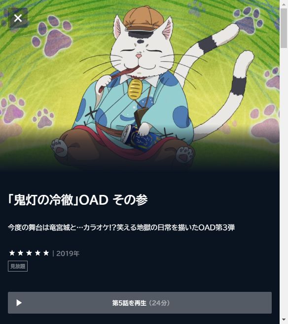 念の為、Netflixにてドラマ「鬼灯の冷徹 OAD その参」の配信する予定があるのか調べましたが、ドラマ「鬼灯の冷徹 OAD その参」の配信の予定はなかったので、未定になります。