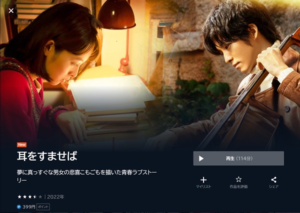 映画「耳をすませば」をU-NEXTで視聴するのに399円のレンタル料金がかかります。