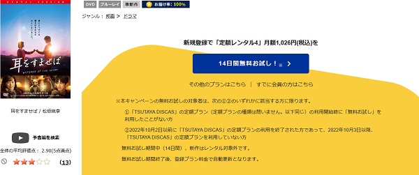 TSUTAYA DISCASで映画「耳をすませば」をDVDレンタルで無料視聴
