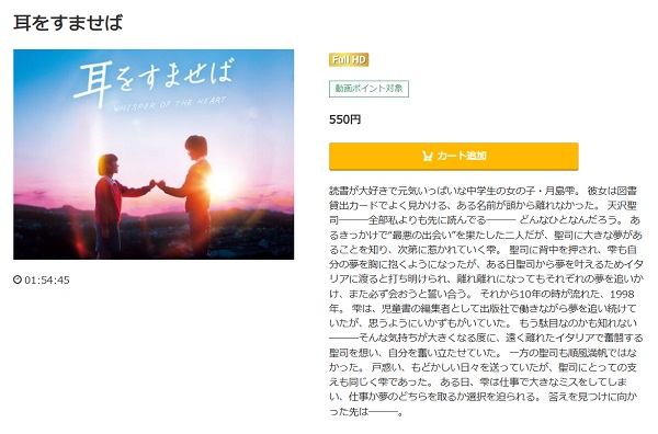 映画「耳をすませば」は550円でレンタル配信してるので、フルで視聴できます。