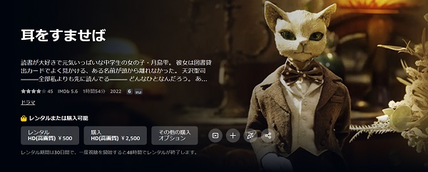 しかし、映画「耳をすませば」はレンタル作品のため、500円かかってしまい無料視聴することができません。