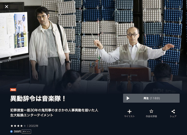 映画「異動辞令は音楽隊!」をU-NEXTで視聴するのに399円のレンタル料金がかかります。