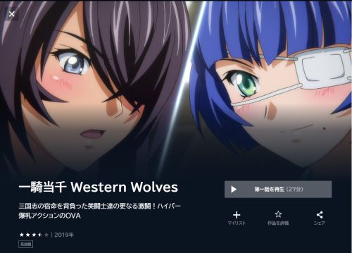 ただ、アニメ「一騎当千 Western Wolves」の関連作品やシリーズ作品は配信しているので、有料となってしまいますが見放題で視聴は可能です。