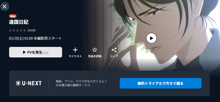 31日間の無料トライアルが設けられており、この期間を利用すれば月額料金なしでアニメ「違国日記」を視聴できます。
