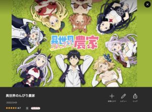2026年3月現在、U-NEXTではアニメ「異世界のんびり農家」の動画が見放題で配信中です。