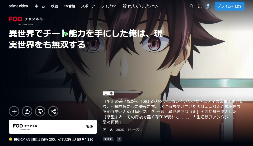 Amazonプライムビデオで配信中のTVSPアニメ「異世界でチート能力を手にした俺は、現実世界をも無双する ~レベルアップは人生を変えた~」の動画を無料トライアルで視聴