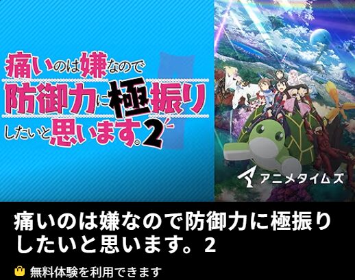2026年4月現在、30日間の無料トライアルに登録すれば、アニメ「痛いのは嫌なので防御力に極振りしたいと思います。2」を追加料金なしで全話視聴できます。