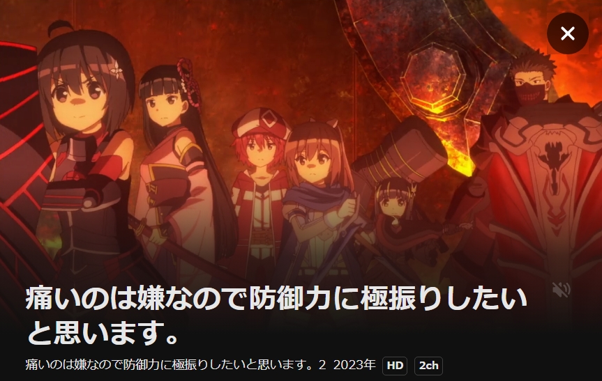 アニメ「痛いのは嫌なので防御力に極振りしたいと思います。2」が配信してる動画配信サービスを調査しました。