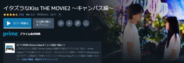 映画「イタズラなKiss THE MOVIE Part2 キャンパス編」はAmazonプライムビデオでもフルで視聴することができます。