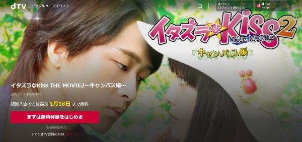 31日間のお試し期間があり映画「イタズラなKiss THE MOVIE Part2 キャンパス編」を配信してるのでフルで視聴ができます。