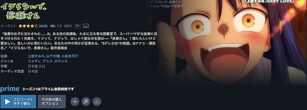 人気の動画配信サイトAmazonプライムでも、アニメ「イジらないで、長瀞さん」を視聴できるか調査しました。
