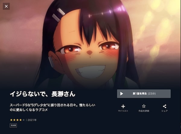 Netflixでは、アニメ「イジらないで、長瀞さん」は配信されていませんでした。