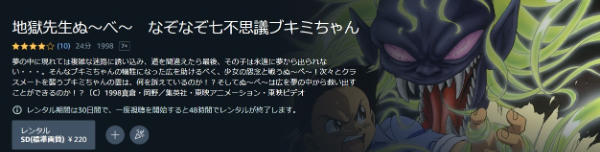 「地獄先生ぬ〜べ〜 なぞなぞ七不思議・ブキミちゃん」のアニメのレンタル料金は1話220円です。
