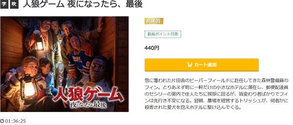 映画「人狼ゲーム 夜になったら、最後」は440円でレンタル配信してるので、フルで視聴できます。