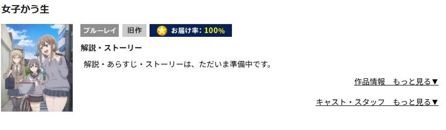 さらに、TSUTAYA DISCASではアニメ「女子かう生」に関連した作品もレンタルできます。。