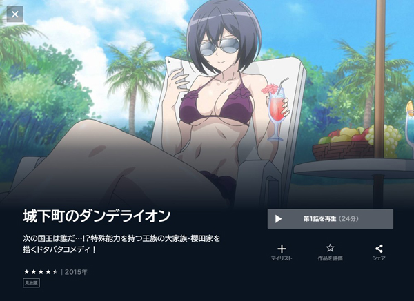 U-NEXTなら、アニメ「城下町のダンデライオン」の動画を1話から全12話まで全話視聴できます。