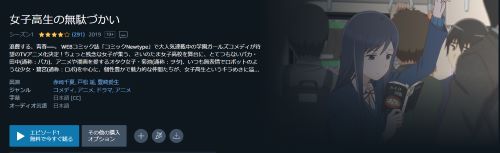 Amazonプライムでアニメ「女子高生の無駄づかい」の動画を全話無料視聴