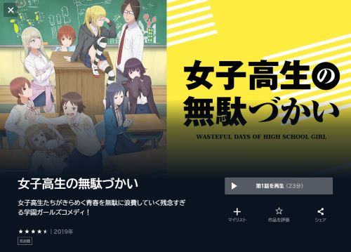 アニメ「女子高生の無駄づかい」の無料動画を配信しているサイト