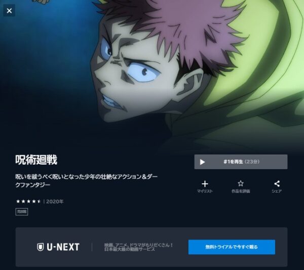 U-NEXTでアニメ「呪術廻戦」のシリーズ動画を全話無料視聴