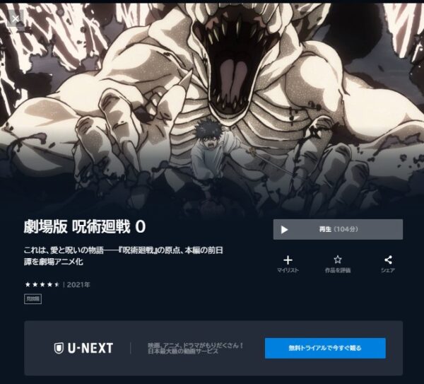 31日間もお試し期間があるので、「呪術廻戦」のシリーズの動画を視聴するには十分になります。
