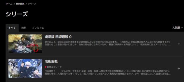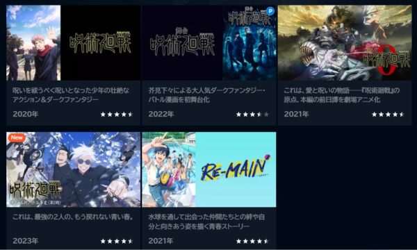 U-NEXTで、アニメ「呪術廻戦」のシリーズの配信状況は以下になります。