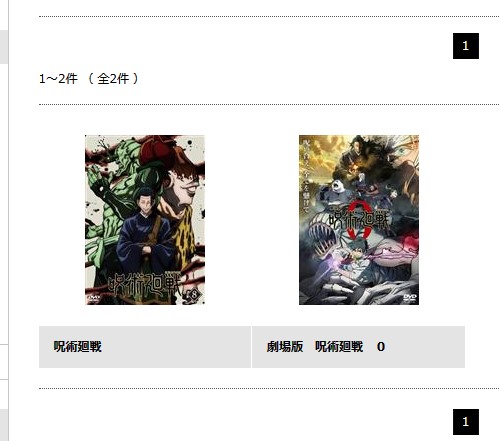 ツタヤディスカスで「呪術廻戦」のアニメをDVDでレンタルできるシリーズ作品はこちら。