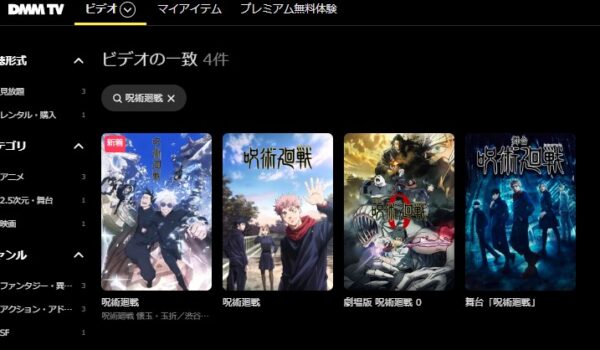 DMMTVでのアニメ「呪術廻戦」シリーズの配信状況は以下になります。